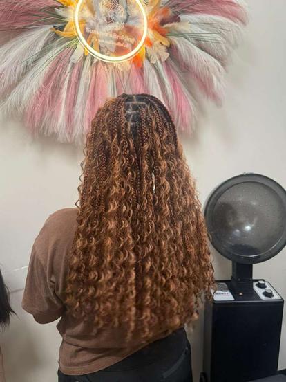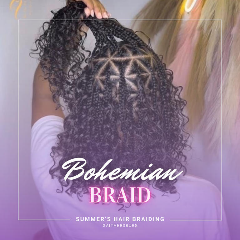 Jumbo Bora Braids are large, striking braids that add volume and style to your look. At Summer's Hair Braiding, we provide the braiding hair for this service, ensuring a comfortable fit without curly hair.